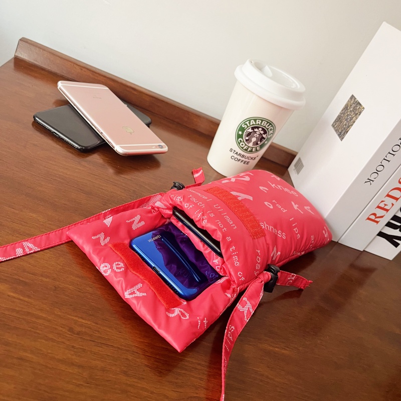 冬天2023新款手机保暖可挂脖可斜挎抽绳收口自由调节长度防冻防光机防摔户外运动工作携带方便布袋小包布艺