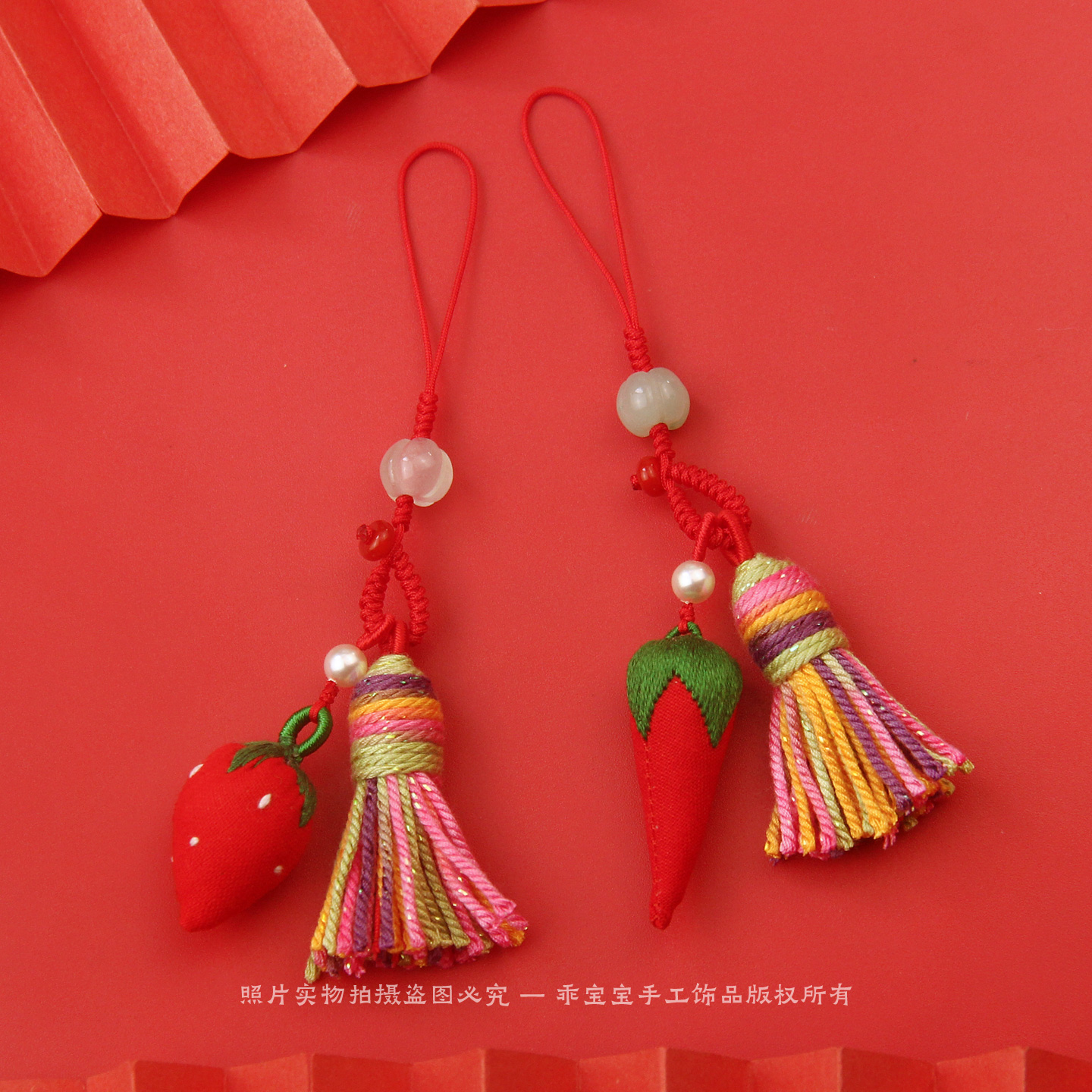 朱砂草莓小辣椒手机挂绳五彩绳流苏吊坠钥匙扣挂件包包挂饰品礼物