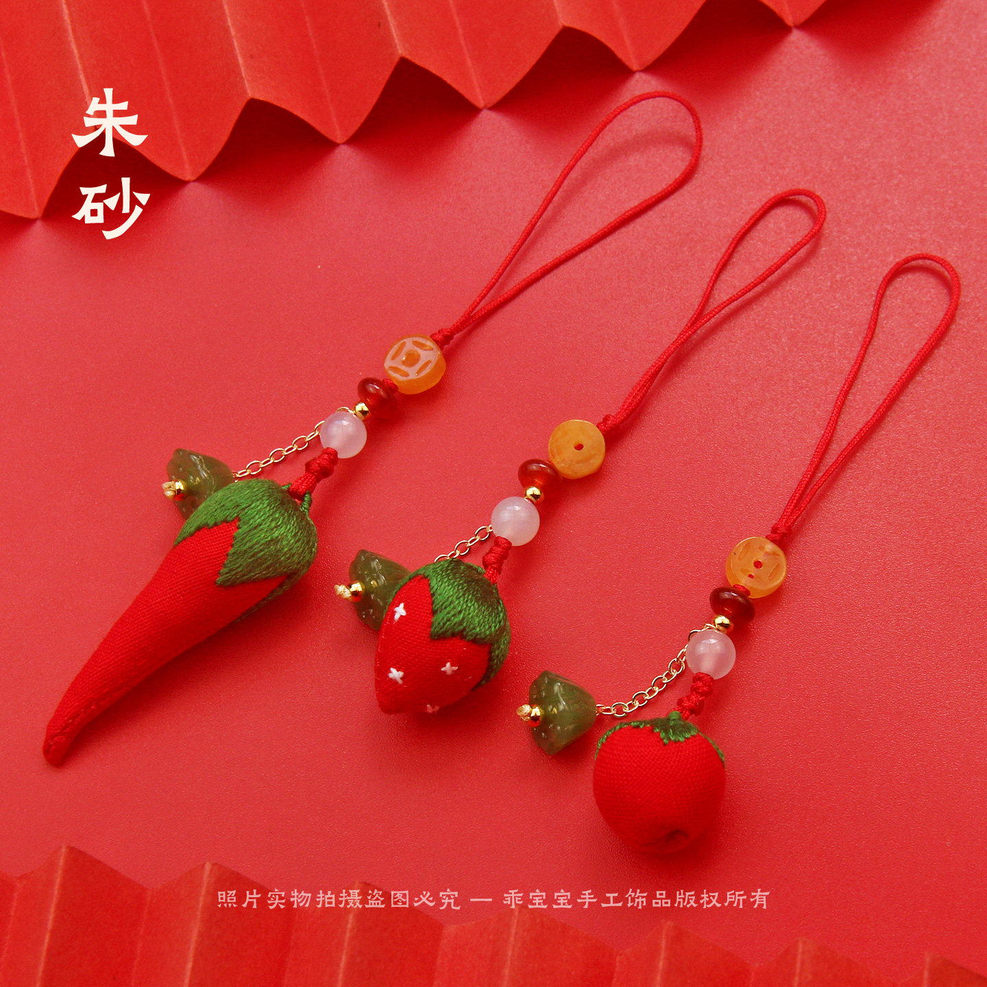 朱砂草莓小辣椒手机挂件本命年平安护身符手机链钥匙扣包包挂饰品