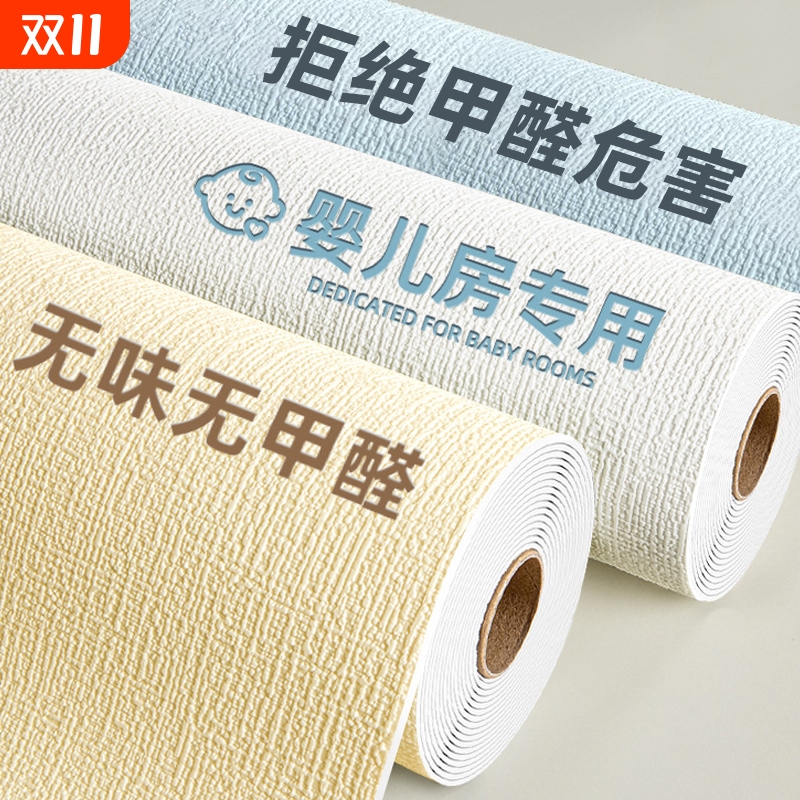 自粘墙纸家用墙贴卧室客厅贴纸亚麻布纹纯素色加厚无纺布自贴壁纸