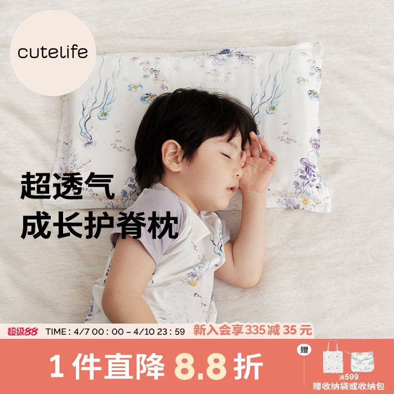 cutelife儿童枕头硅胶枕定型枕0-1-3-6岁以上护颈枕竹棉凉感透气