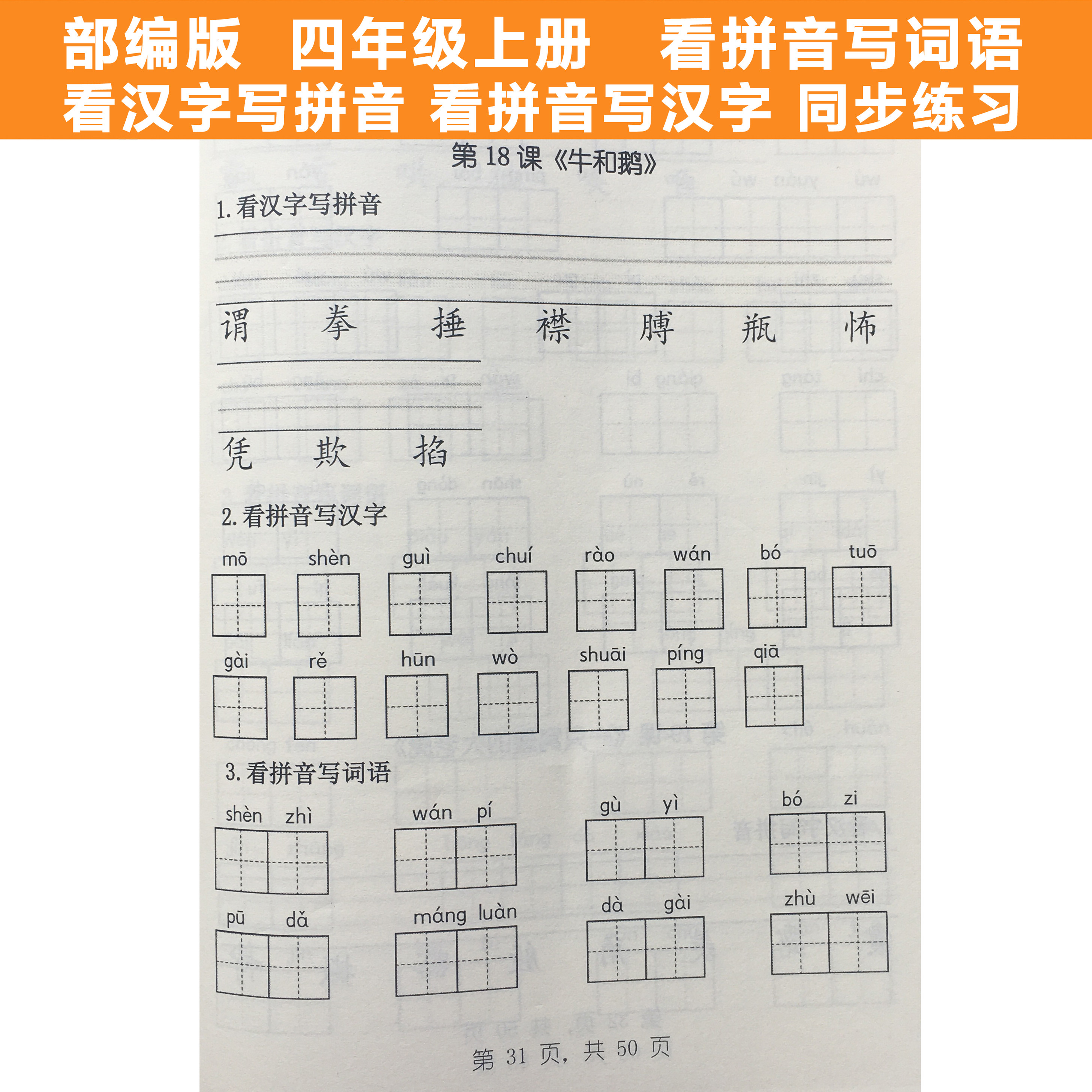 语文四年级上册看拼音写词语看汉字写拼音看拼音写汉字同步练习本