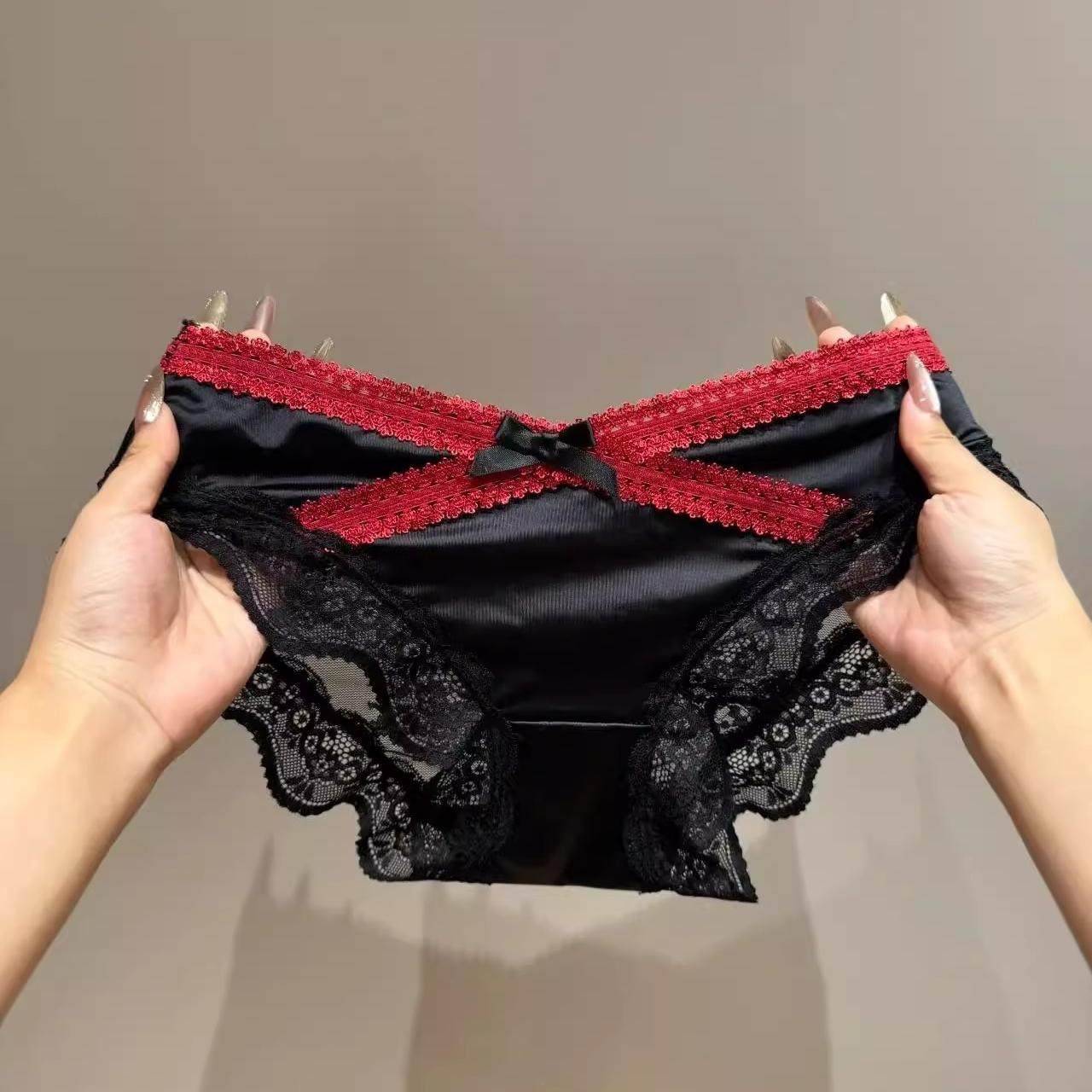 姐姐看起来就香香的!交叉撞色性感低腰蕾丝~美在心巴上的小花边~