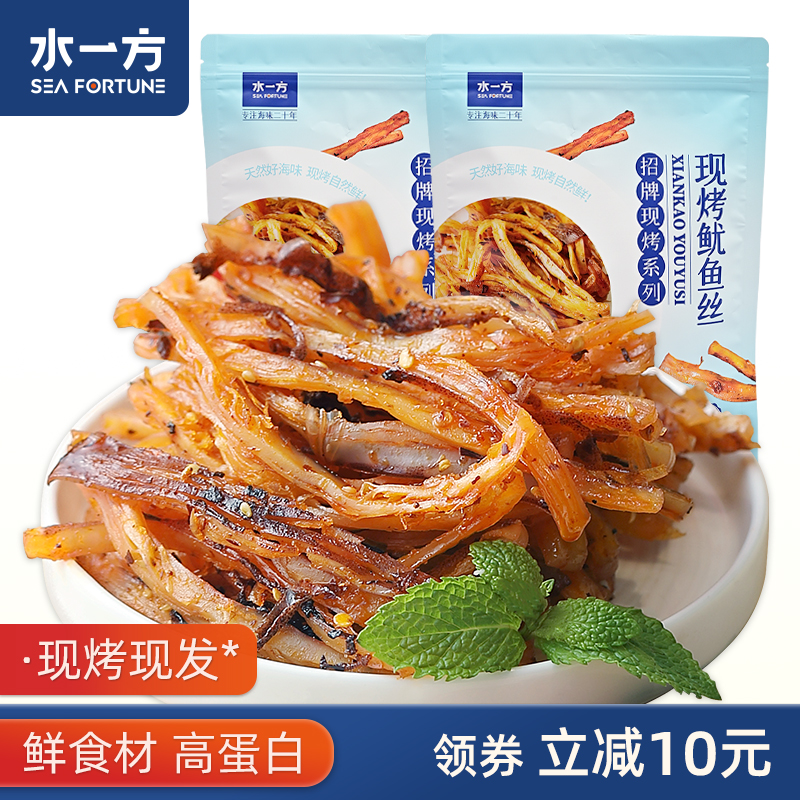 水一方现烤鱿鱼丝香辣味500g大连特产碳烤鱿鱼条麻辣海鲜看球零食