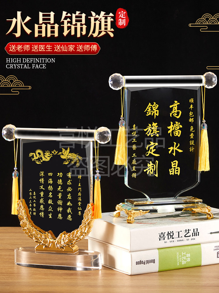 高档锦旗定制送仙家看香师傅还愿谢恩师菩萨寺庙升级水晶旗头旌旗
