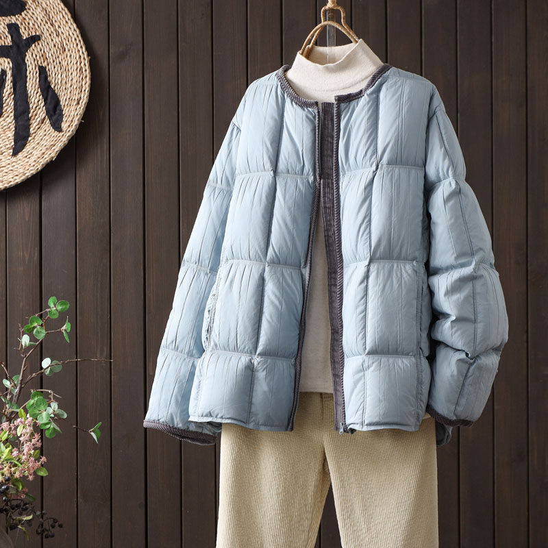 2025冬季新款韩系超厚实保暖羽绒服女灯芯绒领宽松短版白鸭绒外套