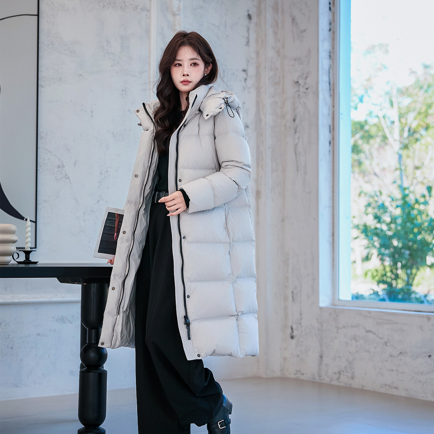 大嘎daga韩版长款羽绒服女2024新款过膝超长超厚连帽宽松冬季外套
