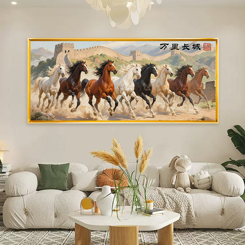 八骏图十字绣中式万里长城满绣自己线绣印花全绣马到成功客厅高级
