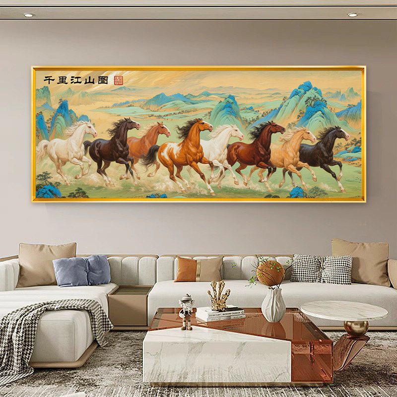 家和万事兴马到成功八骏图十字绣2025新款线绣高级感客厅满绣山水