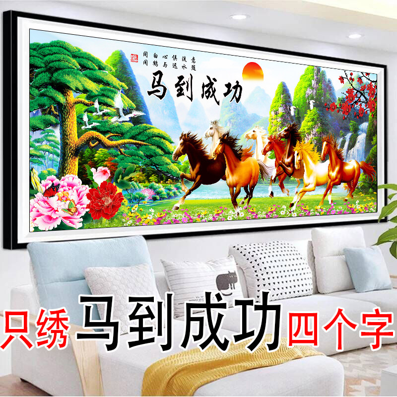 八骏图十字绣2021新款客厅y线绣马到成功山水画风景大幅自己绣手