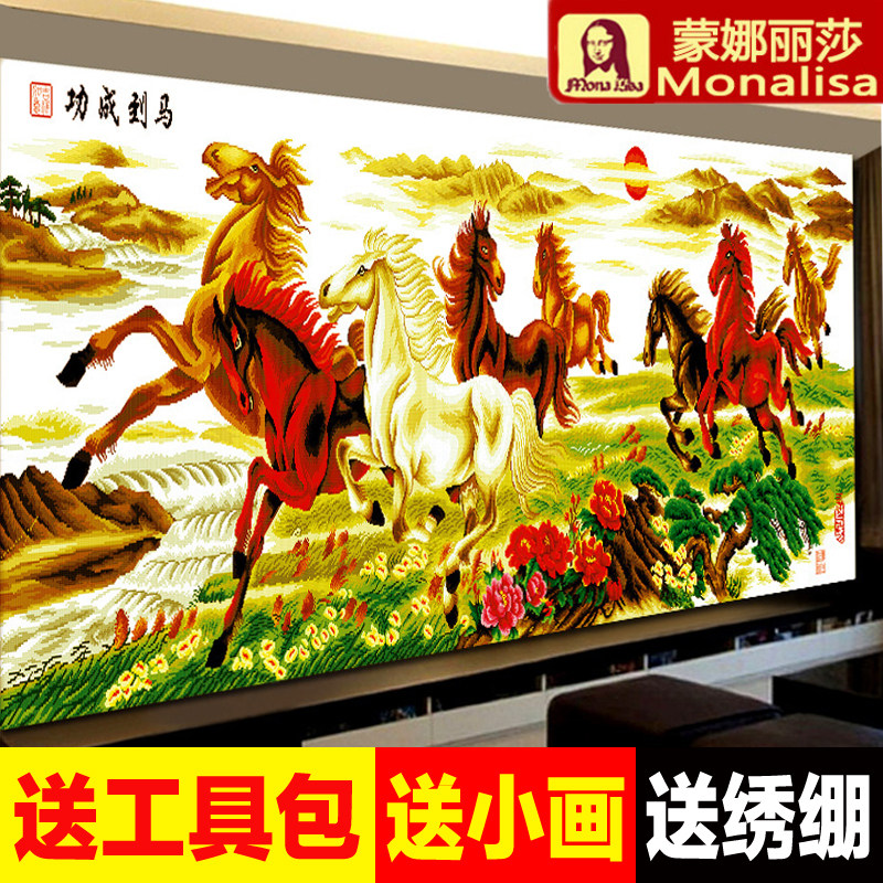 蒙娜丽莎十字绣2021新款绣八骏图十字绣大幅客厅线绣大气马到成功