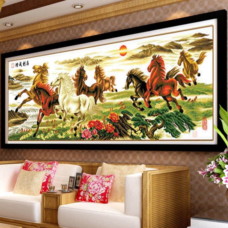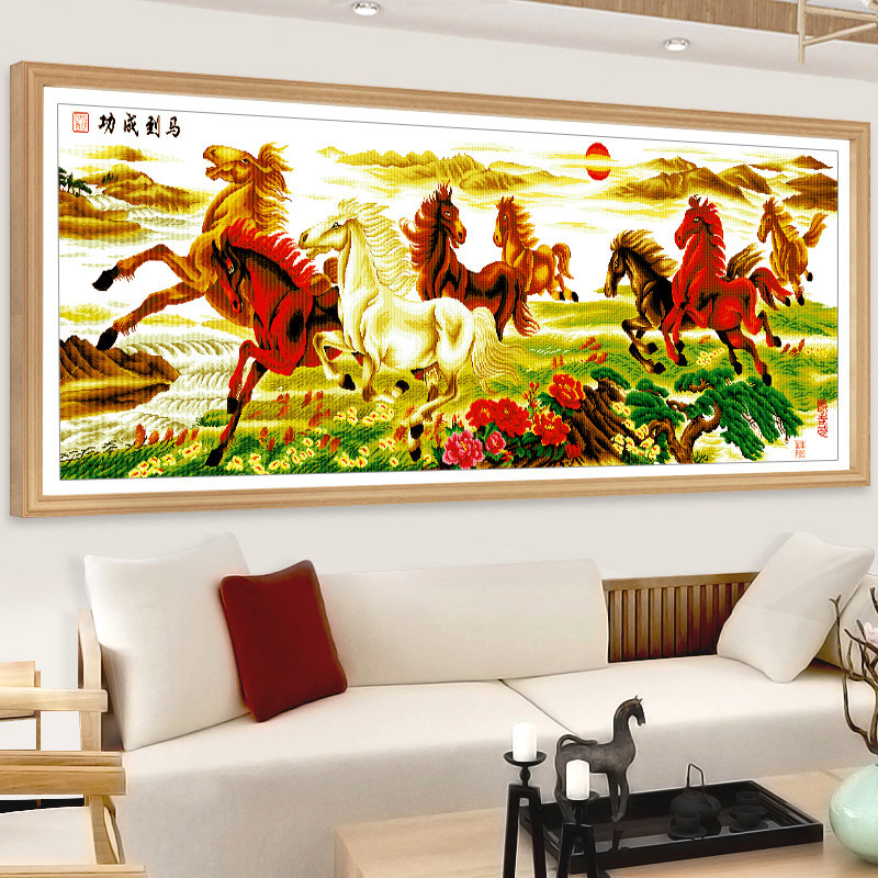 八骏图十字绣客厅画2026新款自己绣线绣大幅3米八骏奔腾马到成功