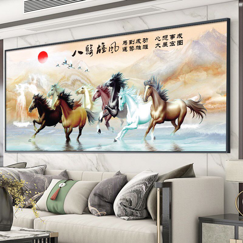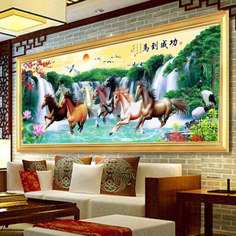5d钻石画满钻客厅马到成功八骏图十字绣贴钻秀砖石画新款粘钻石绣