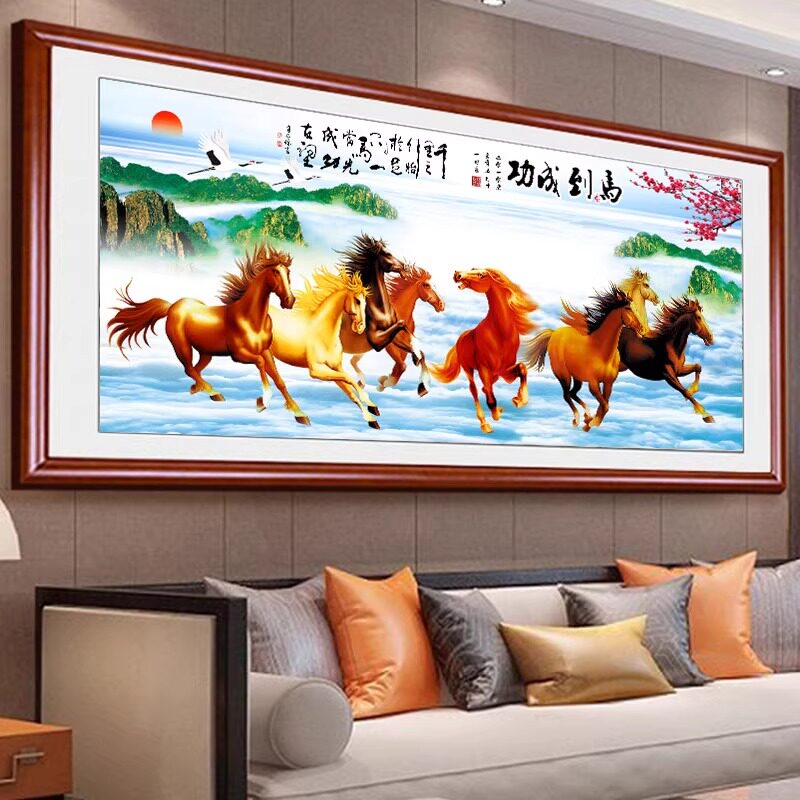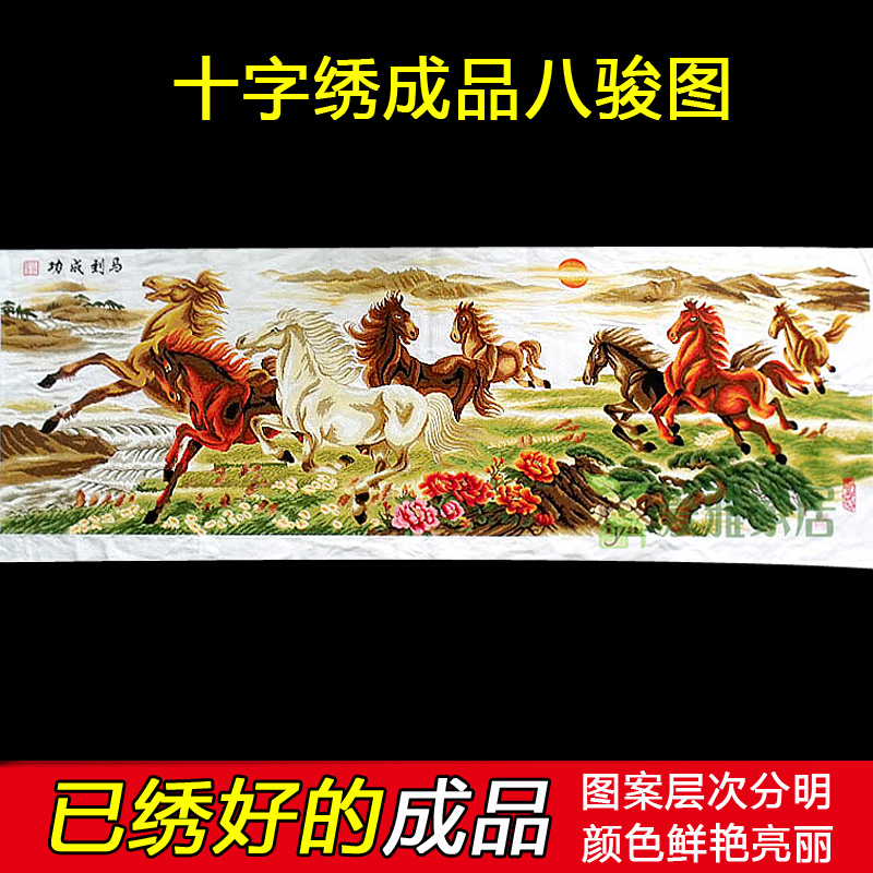 八骏图十字绣成品机绣马到成功2024新款线绣客厅系列已绣好的出售