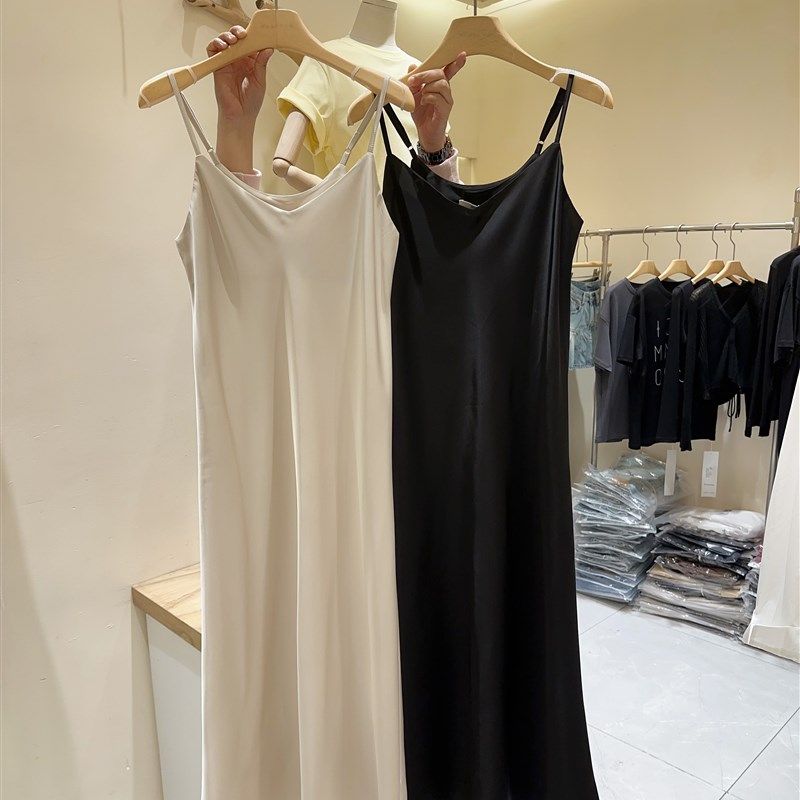 欧美ins时尚纯色高级感吊带连衣裙卡戴珊同款修身包臀拖地长裙 夏