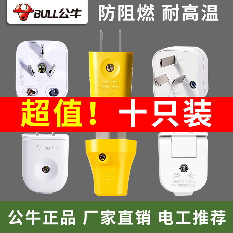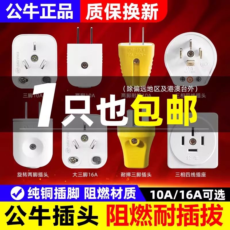 公牛插头二三脚插头空调插头10a/16a插头电源插线板插排不带线