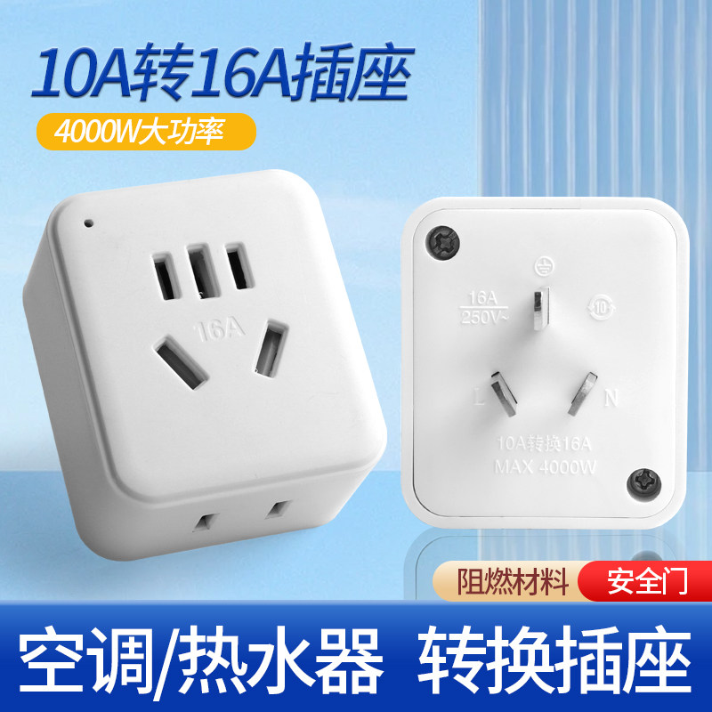 16A转10A空调插头转换器16安插座普通三孔家用接线板多功能转换头