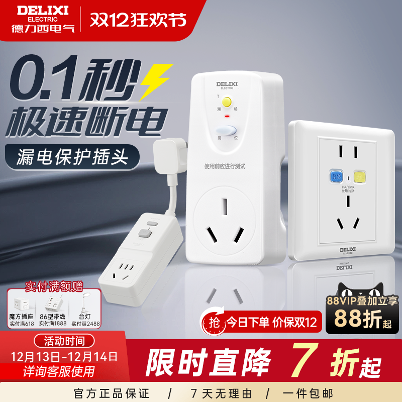 德力西漏电保护器插头插座16a空调电热水器自动断电漏保开关插座