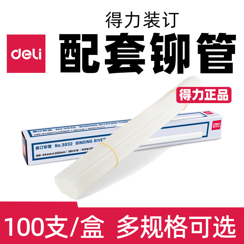 得力凭证装订机铆管3850透明塑料管财务打孔机装订耗材热熔胶管
