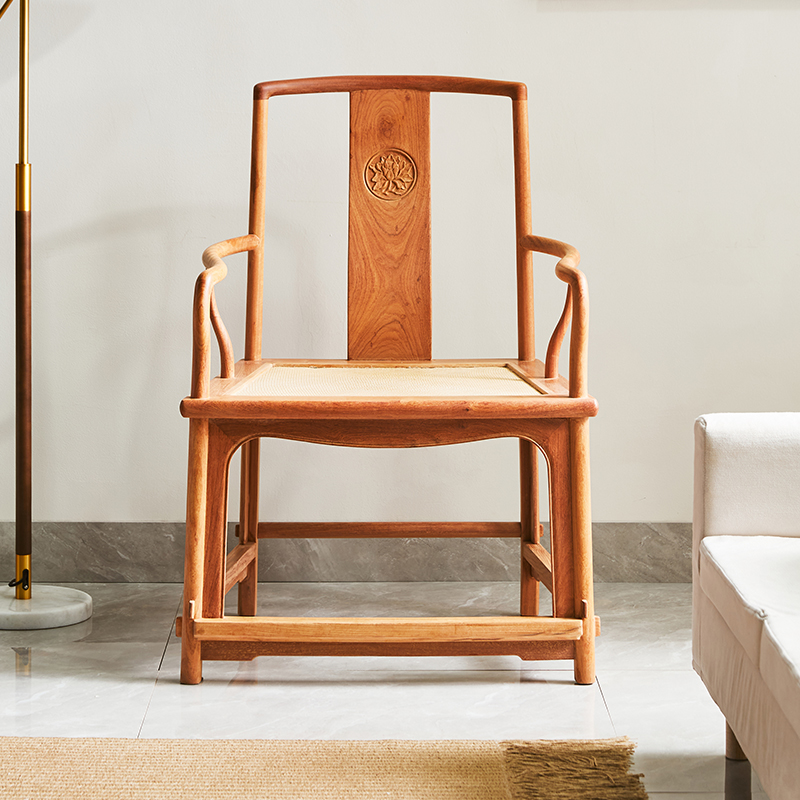 红木家具缅甸花梨木南官帽椅实木茶椅新中式休闲椅大果紫檀南宫椅