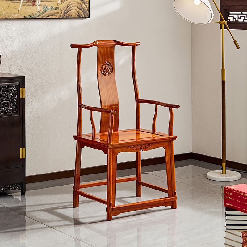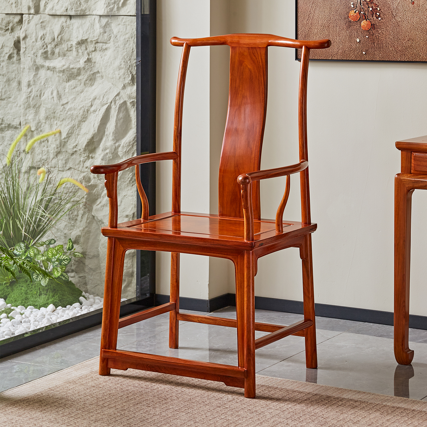 缅甸花梨木上博官帽椅新中式实木靠背椅茶椅主人椅大果紫檀办公椅