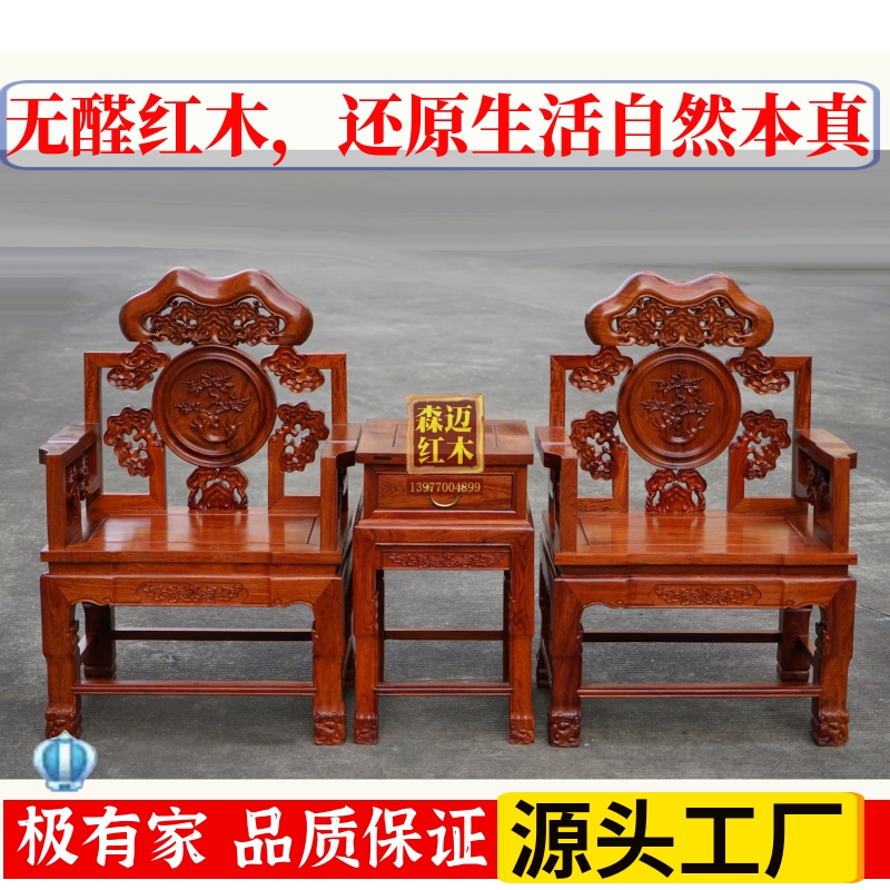 红木家具缅甸花梨木脚花一体皇宫椅三件套休闲椅圈椅围椅大果紫檀
