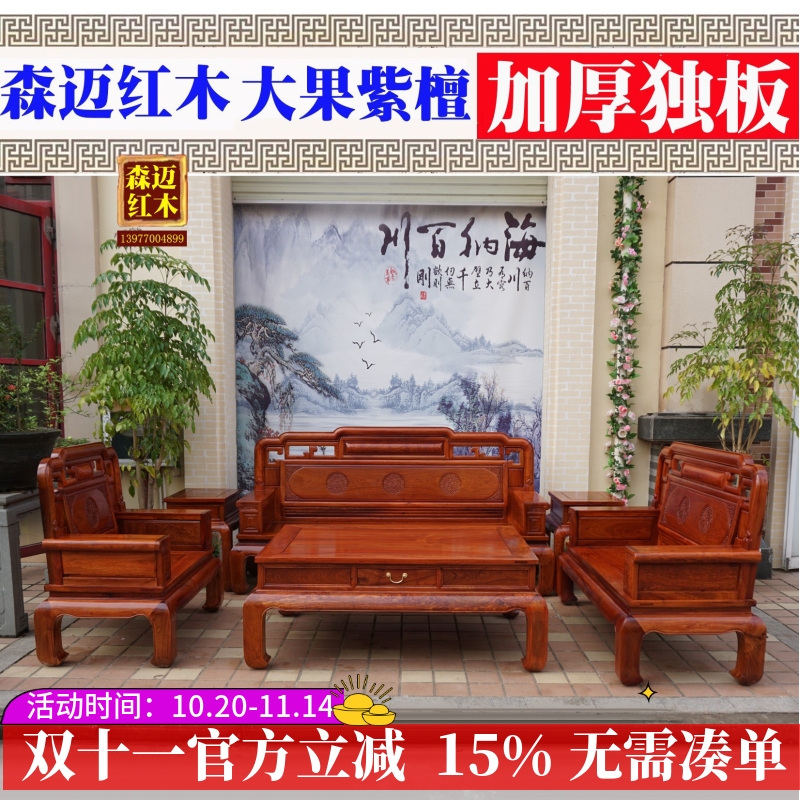 缅甸花梨红木沙发实木原木家具加厚独板大果紫檀榫卯明清古典家具