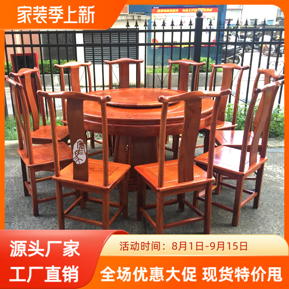 缅甸花梨餐桌椅大果紫檀红木京瓷家具实木刺猬紫檀圆餐台中式定制