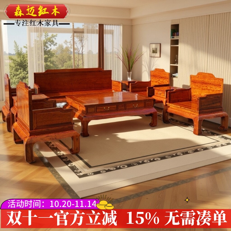 缅甸花梨大果紫檀客厅中式全套家具实木大款九五至尊红木沙发组合