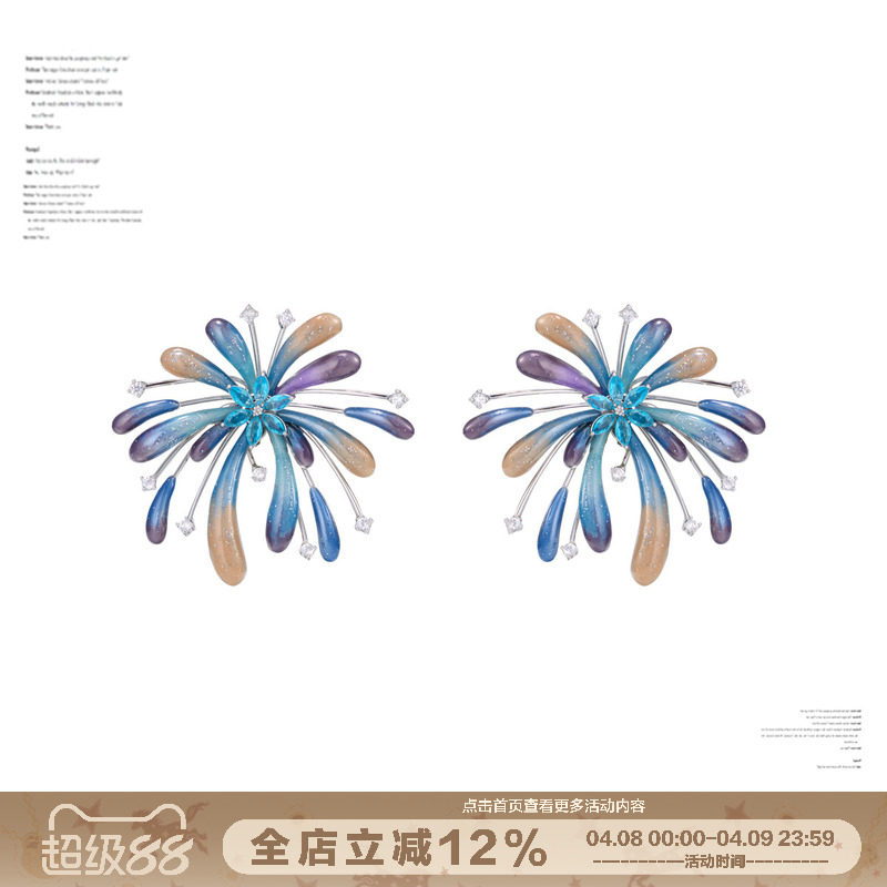 白昼烟火~ 轻奢烟花耳钉女款高级感小众纯银针耳环耳饰无耳洞耳夹