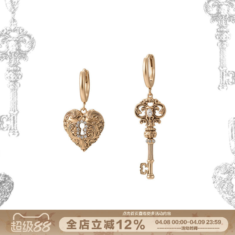SUMIYAKI 复古爱锁芯系列不对称钥匙耳环爱心耳饰女耳夹无耳洞