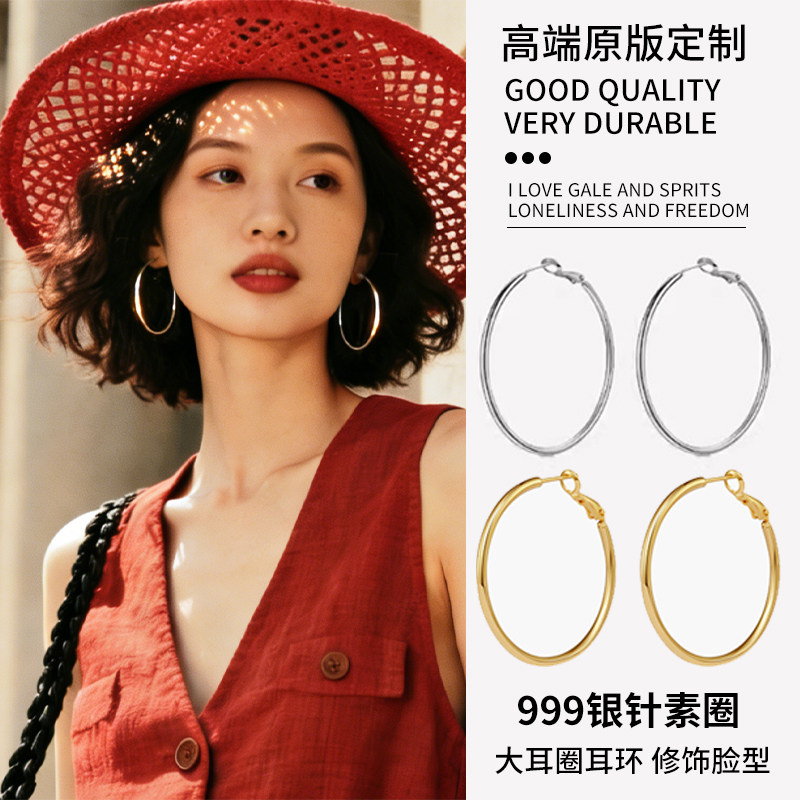 999纯银耳针耳环圈圈大圈圆圈耳饰耳圈高级感轻奢素圈耳环耳夹女