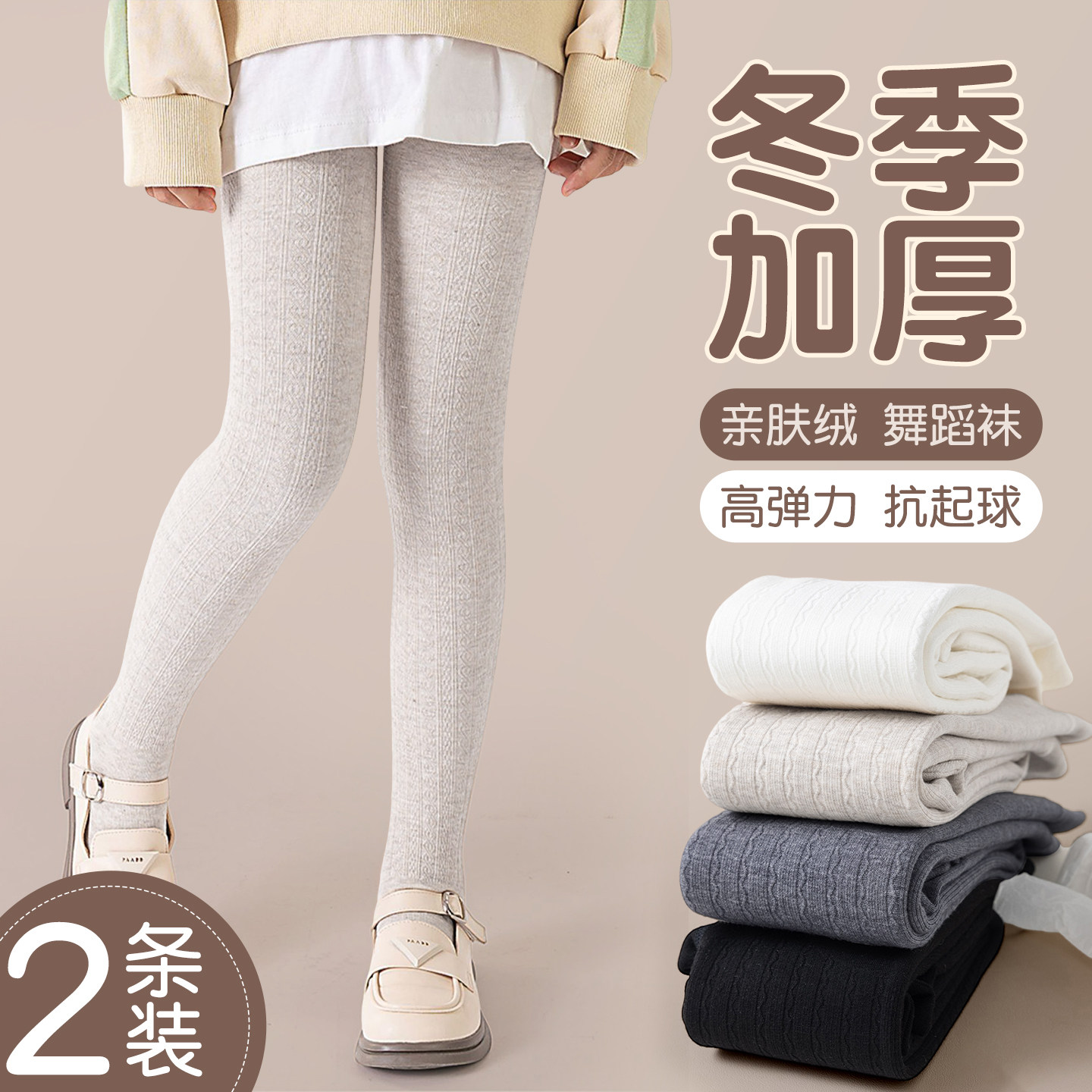 女童连裤袜秋冬季儿童舞蹈袜白色打底裤春秋款薄绒跳舞袜加绒加厚