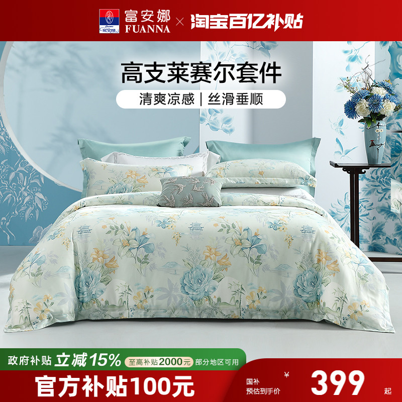 富安娜家纺60支天丝四件套冰丝床单被套凉感丝滑裸睡套件夏季床品