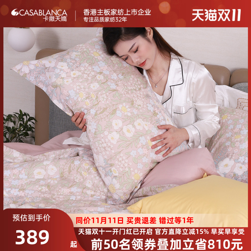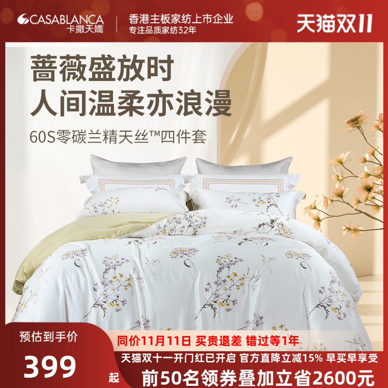 卡撒天娇60支兰精天丝四件套花卉田园100莱赛尔纤维被套床单