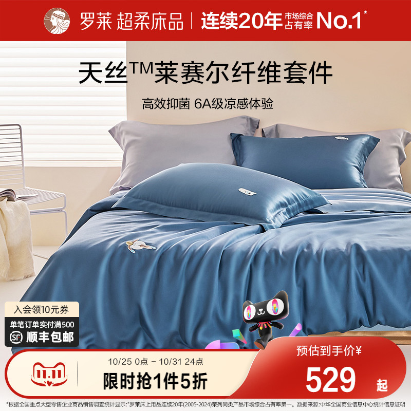 罗莱家纺奥地利100支兰精天丝四件套被套夏季凉感丝滑裸睡套件