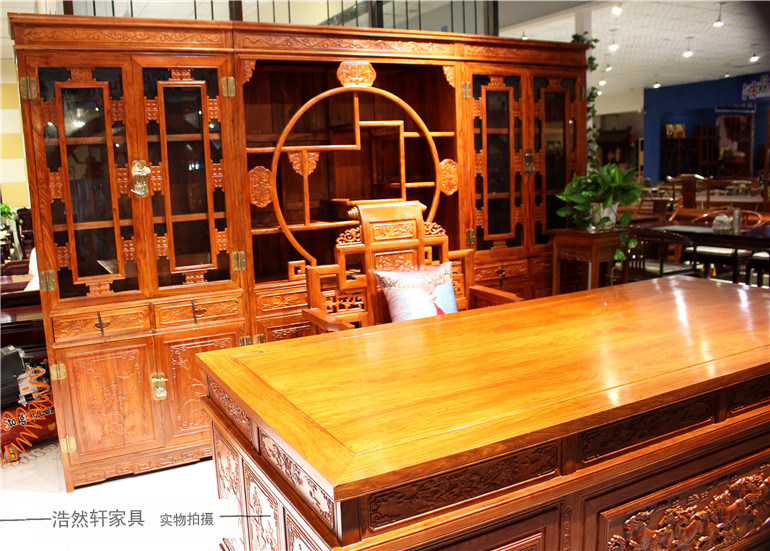 红木办公桌花梨木中式书桌现代书房家具套装组合大班台可定制郑州
