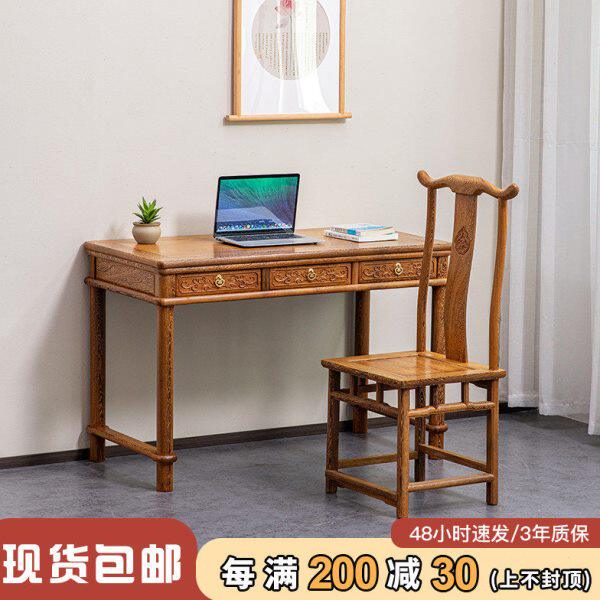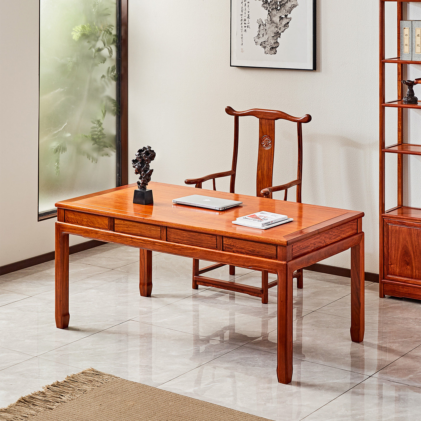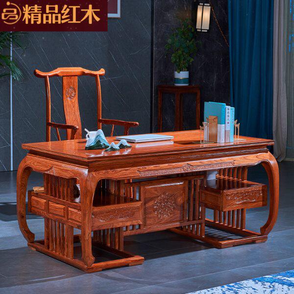 木书桌红木办公桌鸡翅抽书房椅书法桌组合中式家用实木原木轻奢带