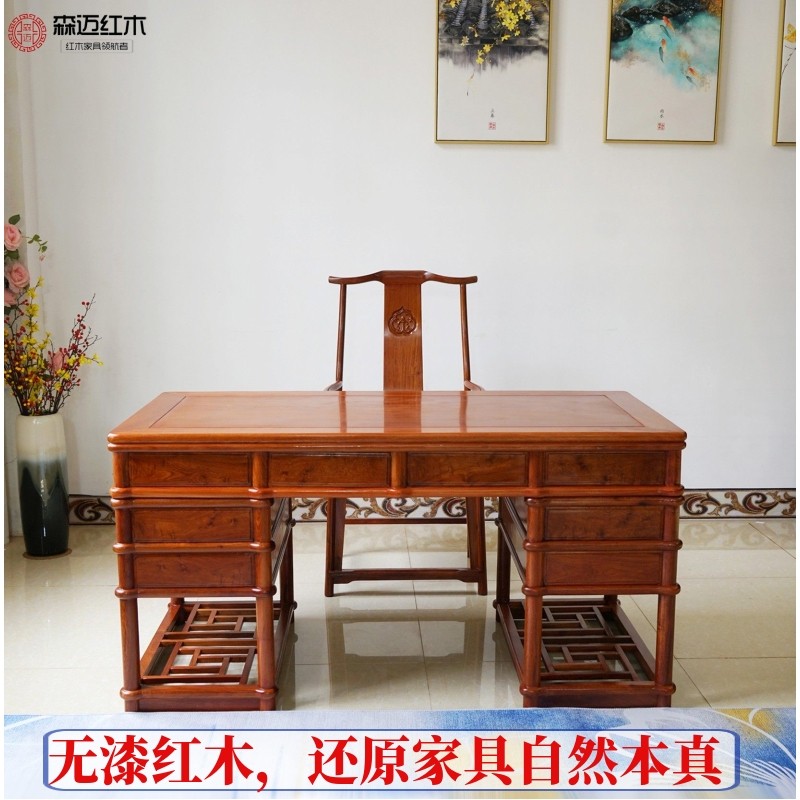 缅甸花梨红木办公桌加厚独板大果紫檀原木实木大班台电脑书桌明榫