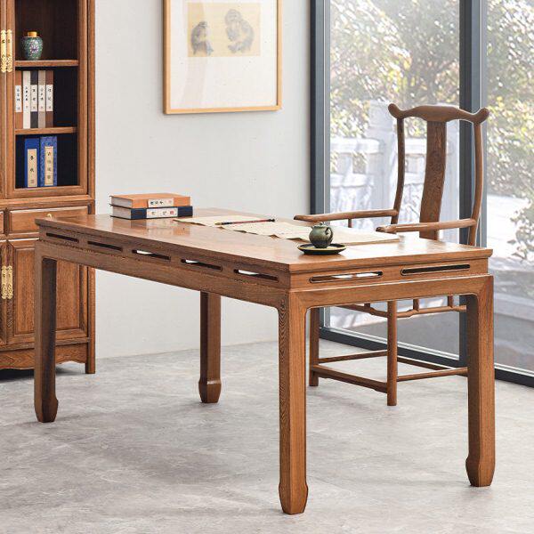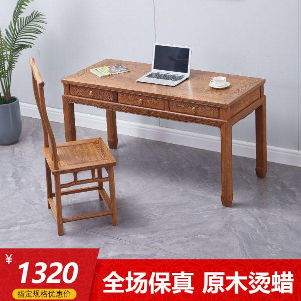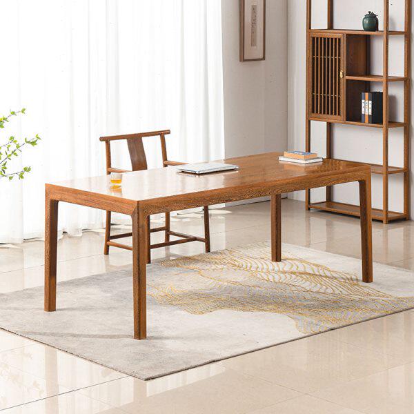 原木全实木新中式案鸡翅中式写字台画红木办公桌简约木书桌书法桌