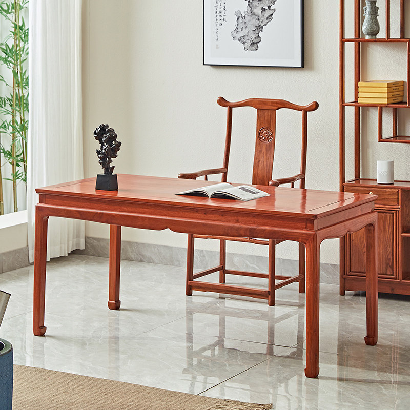 案书法桌写字台全实木原木简约木书桌中式新中式红木办公桌画鸡翅