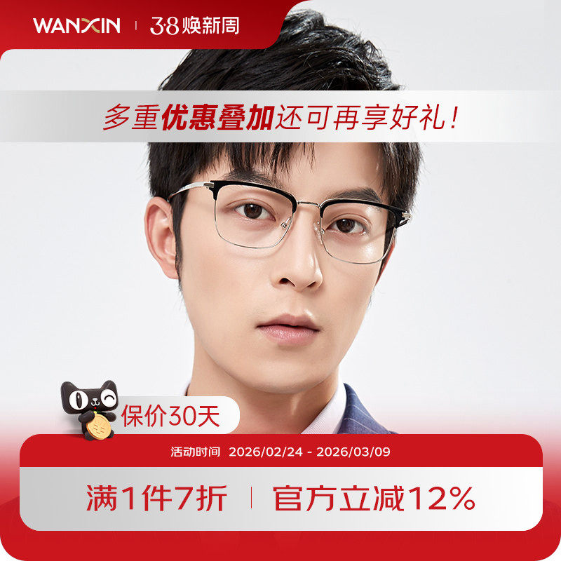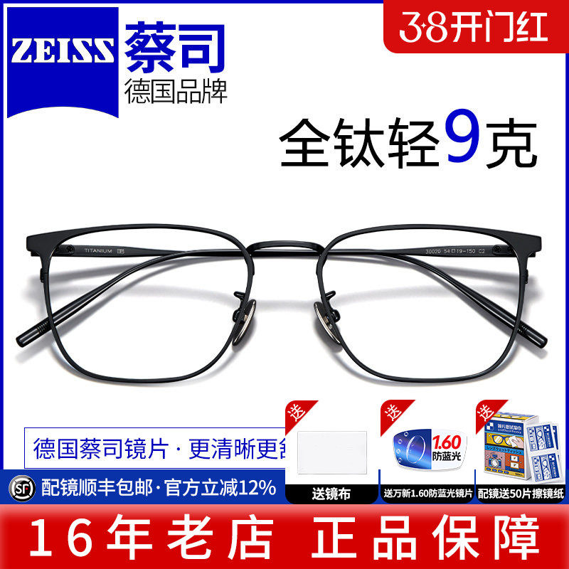 蔡司眼镜片变色时尚男款超轻纯钛眉线眼镜框专业网上配近视防蓝光