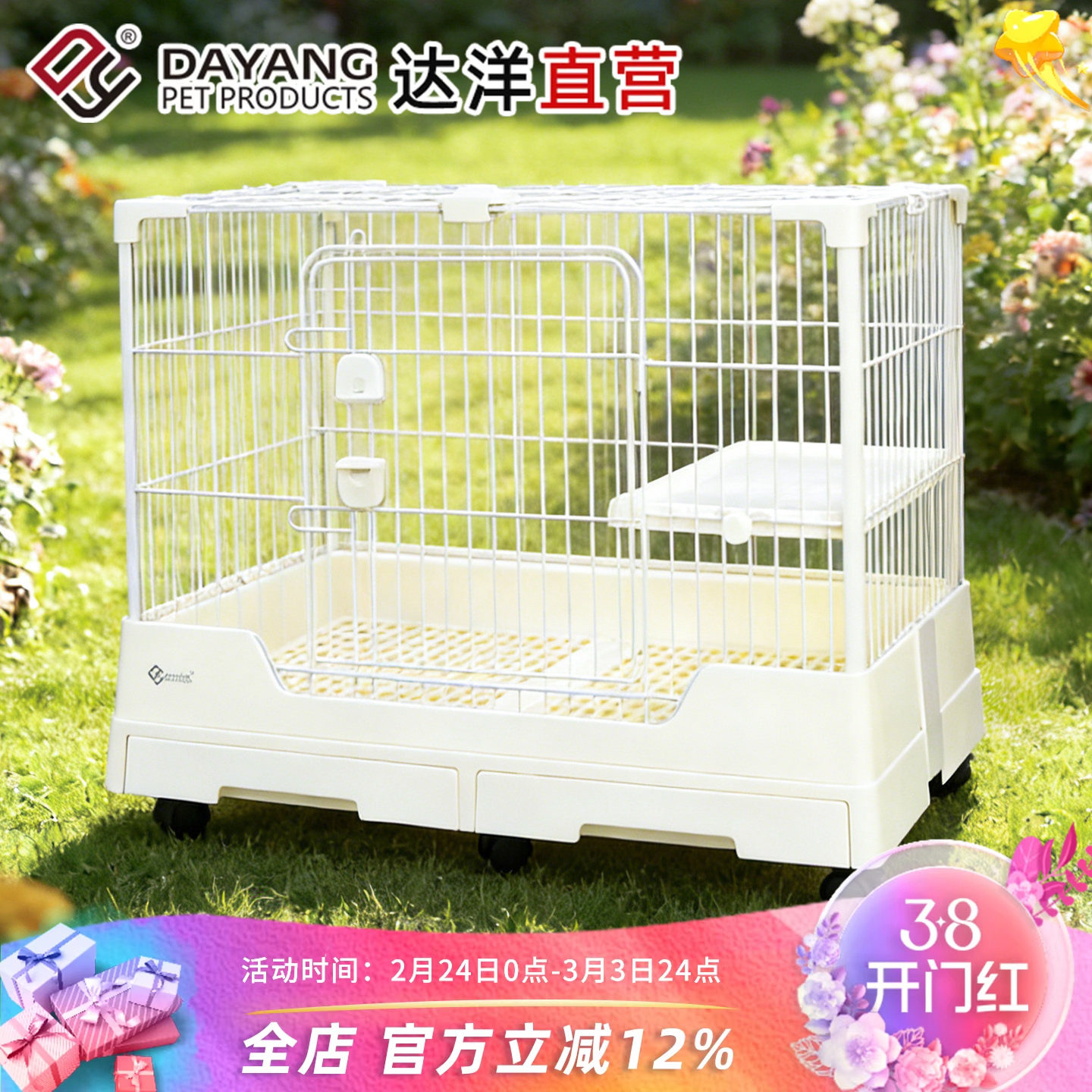 创逸网红兔笼宠物笼子小型犬狗笼子猫咪笼子兔笼子双开门宠物别墅