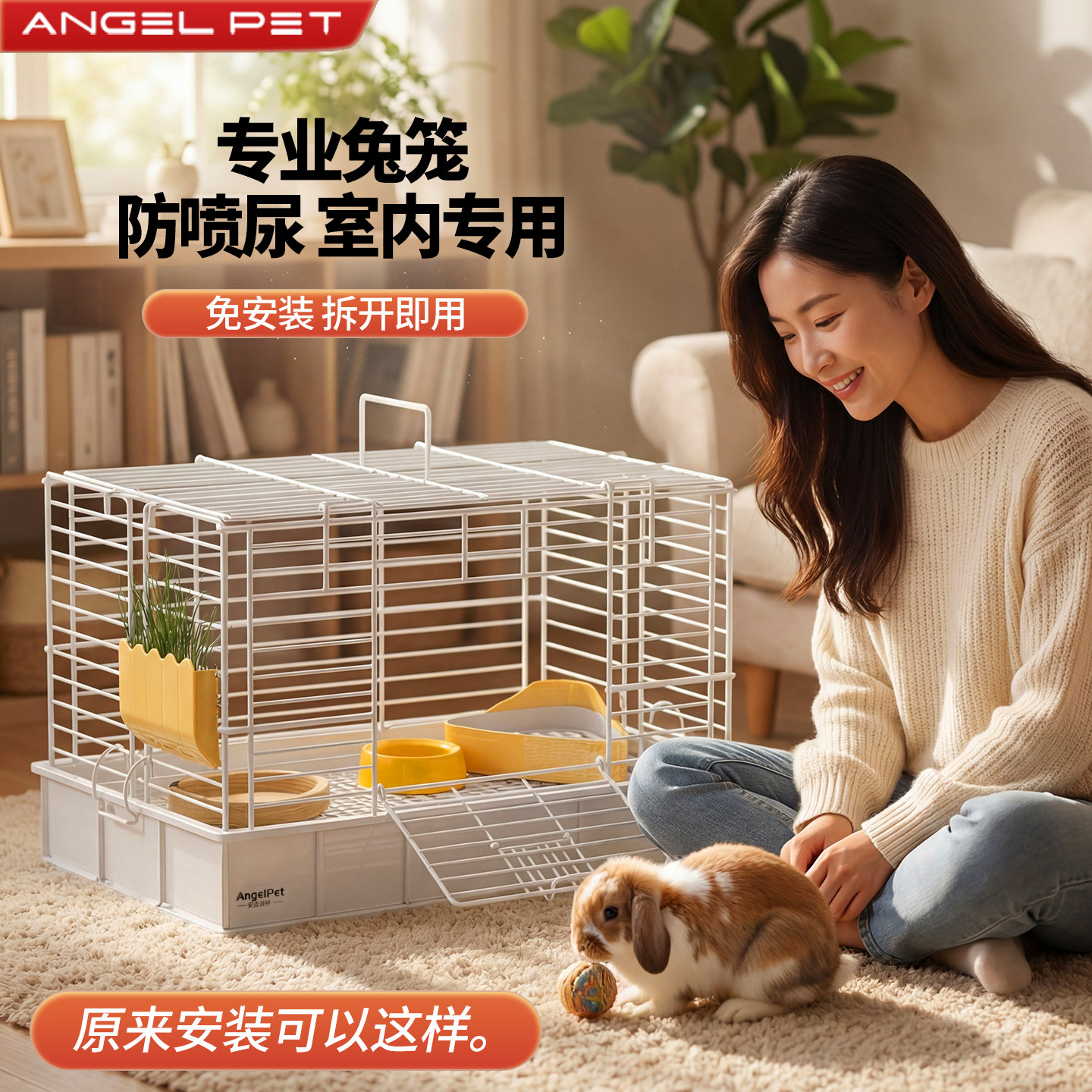 兔笼子家用大号防喷尿溅尿室内专用兔窝自动清粪侏儒兔荷兰猪笼子