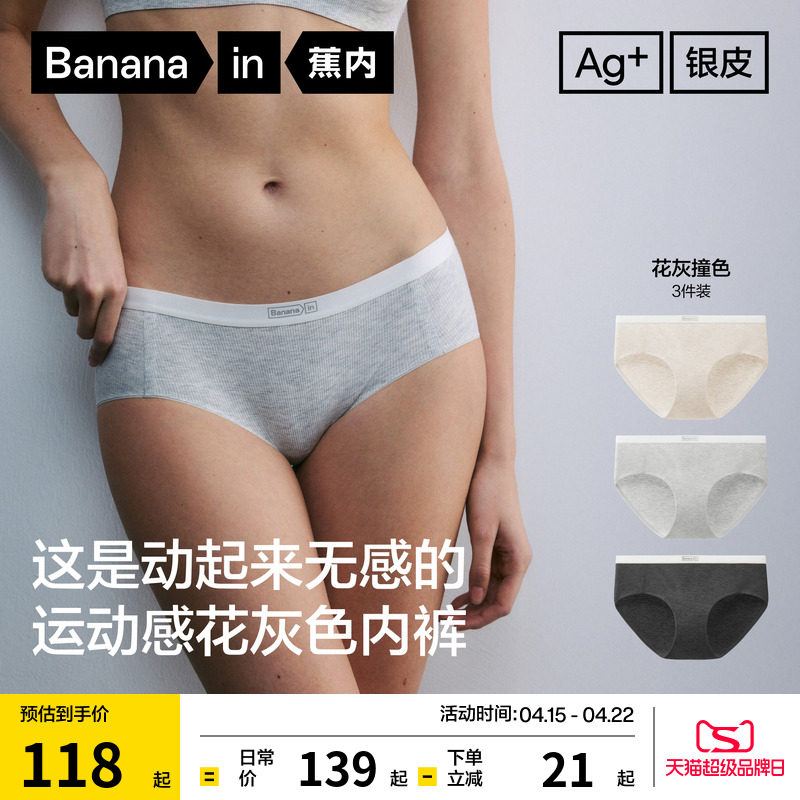 3件|蕉内银皮508A女士内裤纯棉透气裆无痕隐形健身瑜伽三角裤新款