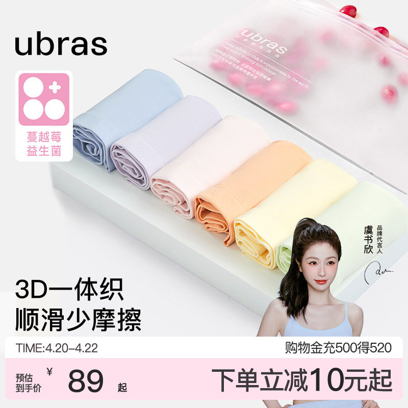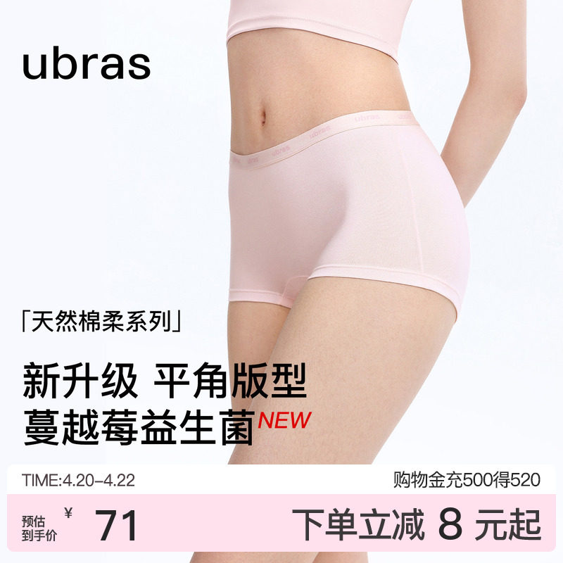 ubras聚乳酸内裤女士莫代尔抗菌纯棉无痕中腰短裤易清洗薄款