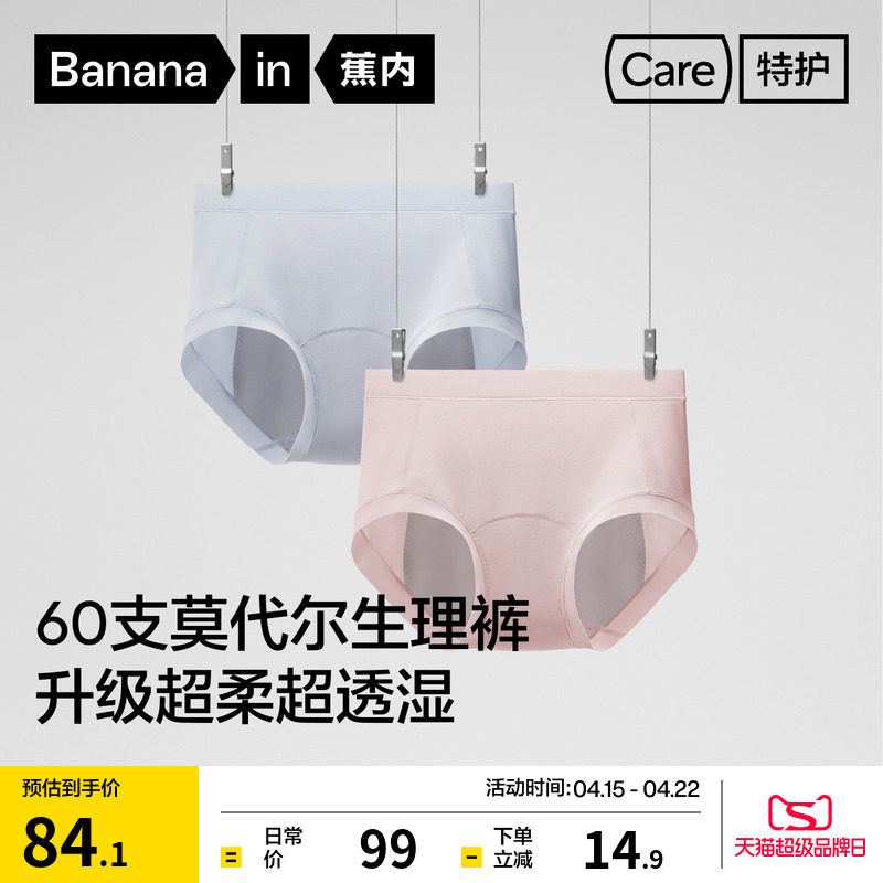 2件|蕉内509A女士内裤莫代尔加宽无痕透气月经期安全裤生理裤女