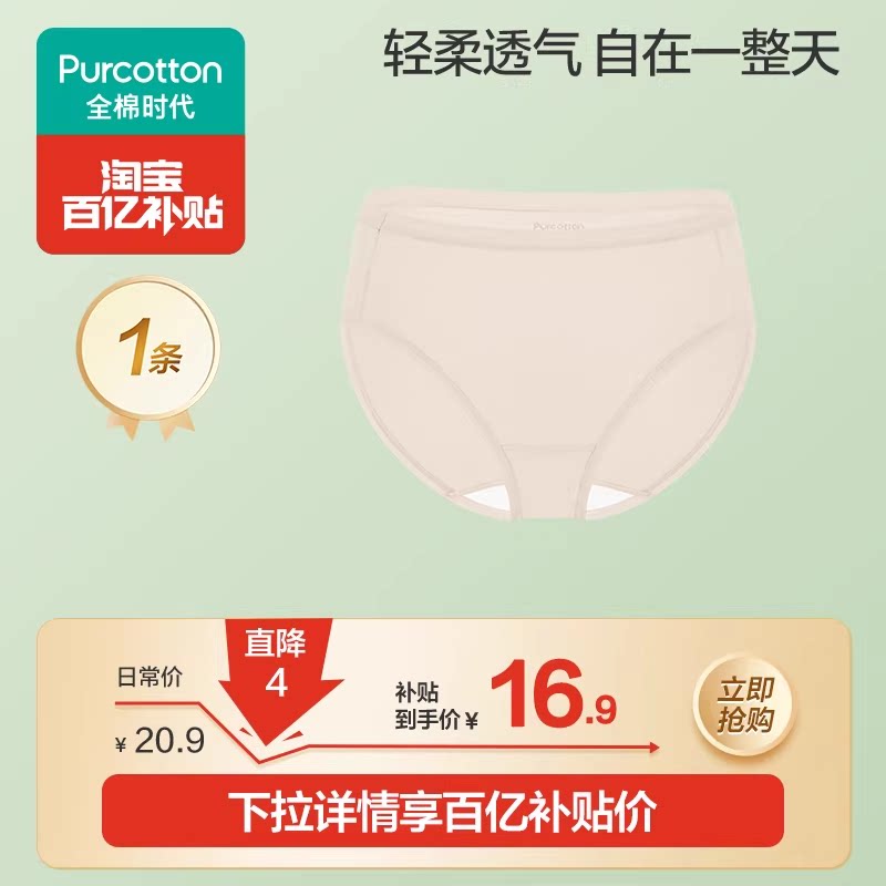 全棉时代内裤女士纯棉中腰女生三角裤短裤加长裆不夹臀抗菌内裤新