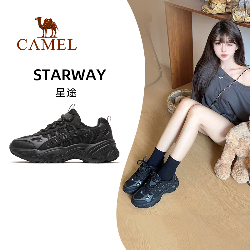 骆驼星途运动鞋女士2025新款女鞋防滑透气休闲鞋厚底增高老爹鞋女