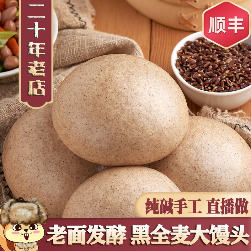 山东全麦纯手工大馒头老面纯粗粮黑米荞麦低脂杂粮无蔗糖燕麦窝头